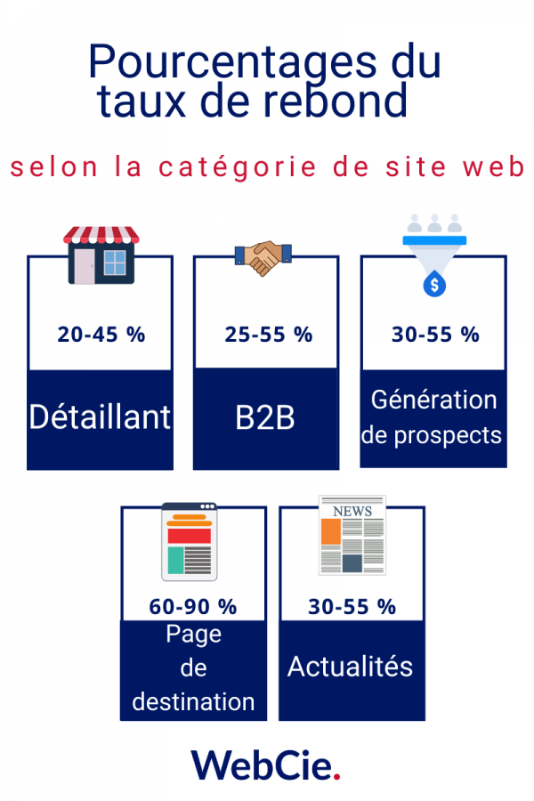 Les dictionnaires et les sites autres que de commerce électronique ont souvent naturellement des taux de rebond plus élevés s’ils sont utilisés pour collecter rapidement des informations spécifiques.